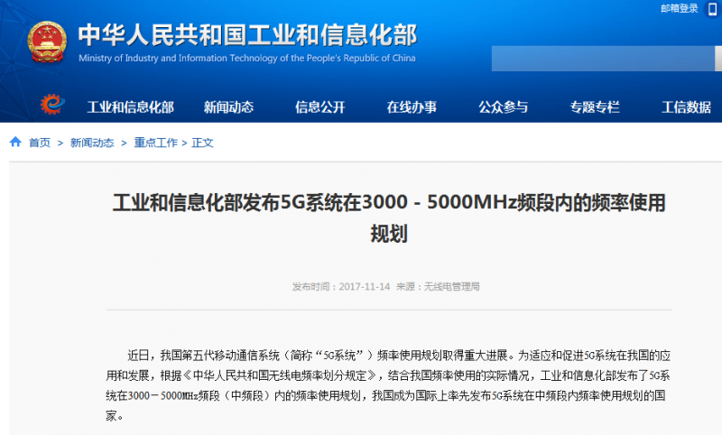 日前,環(huán)球網(wǎng)科技記者從中國(guó)工信部官網(wǎng)了解到,11月14日,工信部正式發(fā)布5G系統(tǒng)在中頻段內(nèi)的頻率使用規(guī)劃。由此,我國(guó)成為國(guó)際上率先發(fā)布5G系統(tǒng)在中頻段內(nèi)頻率使用規(guī)劃的國(guó)家。