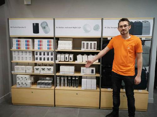 5月22日,工作人員在法國巴黎的小米授權(quán)店內(nèi)展示產(chǎn)品。(新華社)