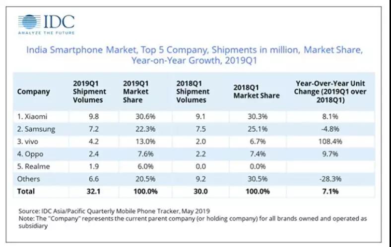 市場(chǎng)研究公司IDC近日發(fā)布的一份最新報(bào)告顯示,在今年第一季度,盡管全球智能手機(jī)銷量同比下降了6%,但印度智能手機(jī)市場(chǎng)的銷量卻同比增長(zhǎng)了7.1%,達(dá)到3210萬(wàn)部。