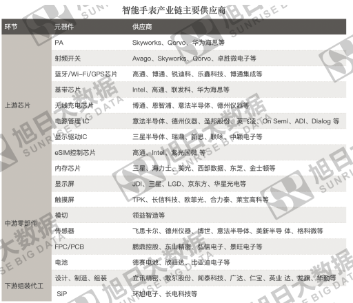 智能手表的出貨量呈現(xiàn)明顯的加速趨勢(shì),我們預(yù)計(jì)智能手表有望復(fù)制TWS的行求,對(duì)上下游產(chǎn)業(yè)鏈帶來(lái)全面的提升。智能手表產(chǎn)業(yè)鏈較長(zhǎng),但可大致分為主控芯片,零部件和下游組裝三大環(huán)節(jié)。