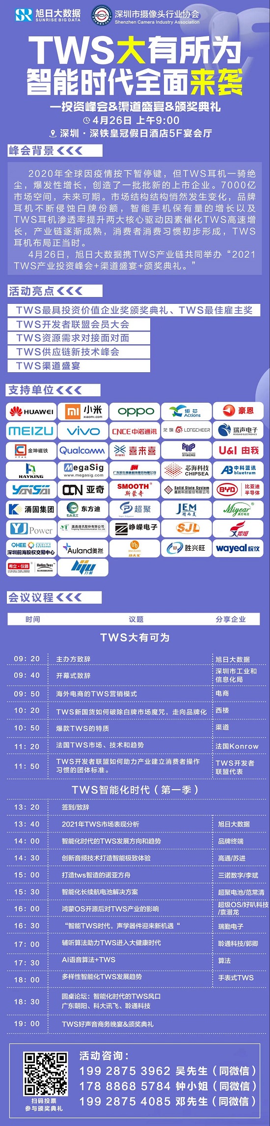 如果你想更深入的了解言九電子,可以在4月26日旭日大數據舉辦的“TWS大有所為,智能時代全面來襲”上相見,屆時,言九電子將以參展商的身份亮相本屆大會,記得是4月26日,深圳深鐵皇冠假日酒店五樓,我們不見不散。